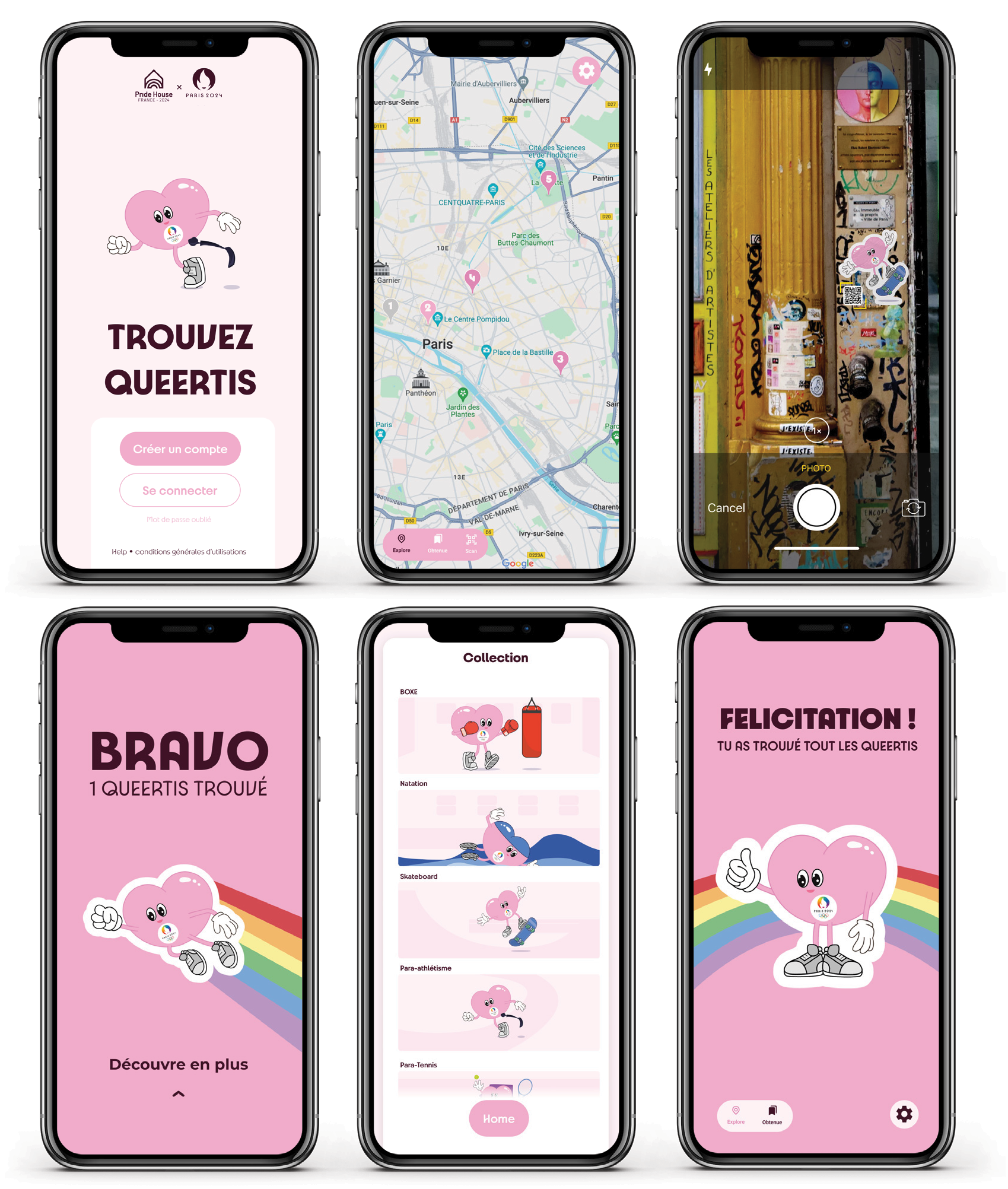 Once all five Queertis are found, users unlock early access to the Pride House’s location. To raise awareness and educate the public about the LGBTQIA+ community, each time a Queertis is found, a short story appears featuring athletes from boxing, wheelchair tennis, swimming, Paralympic athletics, and skateboarding.